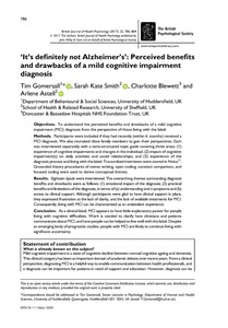 It's definitely not Alzheimer's: perceived benefits and drawbacks of a mild cognitive impairment diagnosis.