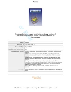 Lombard, S. E., Pollitt, A. Y. ORCID: https://orcid.org/0000-0001-8706-5154, Hughes, C. E. ORCID: https://orcid.org/0000-0002-9790-5820, Di, Y., Mckinnon, T., O'Callaghan, C. A. and Watson, S. P. (2018) Mouse podoplanin supports adhesion and aggregation of platelets under arterial shear: a novel mechanism of haemostasis. Platelets, 29 (7). pp. 716-722. ISSN 0953-7104 doi: 10.1080/09537104.2017.1356919