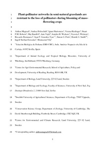 Plant-pollinator networks in semi-natural grasslands are resistant to the loss of pollinators during blooming of mass-flowering crops