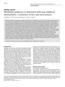 Braithwaite, E. C., O'Connor, R. M., Degli-Esposti, M., Luke, N. and Bowes, L. (2017) Modifiable predictors of depression following childhood maltreatment: a systematic review and meta-analysis. Translational psychiatry, 7 (7). e1162. ISSN 2158-3188 doi: 10.1038/tp.2017.140