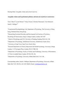 Barry, T. J., Murray, L., Fearon, P., Moutsiana, C., Johnstone, T. and Halligan, S. (2017) Amygdala volume and hypothalamic-pituitary-adrenal axis reactivity to social stress. Psychoneuroendocrinology, 85. pp. 96-99. ISSN 1873-3360 doi: 10.1016/j.psyneuen.2017.07.487