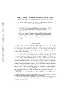 Aleman, A., Lyubarskii, Y., Malinnikova, E. and Perfekt, K.-M. (2016) Trace ideal criteria for embeddings and composition operators on model spaces. Journal of Functional Analysis, 270 (3). pp. 861-883. ISSN 0022-1236 doi: 10.1016/j.jfa.2015.11.006