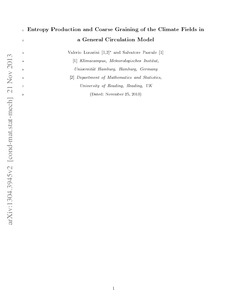 Lucarini, V. ORCID: https://orcid.org/0000-0001-9392-1471 and Pascale, S. (2014) Entropy production and coarse graining of the climate fields in a general circulation model. Climate Dynamics, 43 (3-4). pp. 981-1000. ISSN 0930-7575 doi: 10.1007/s00382-014-2052-5