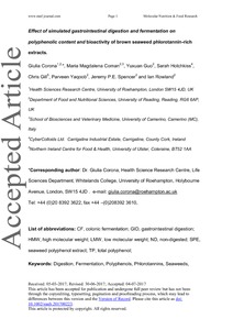 Effect of simulated gastrointestinal digestion and fermentation on polyphenolic content and bioactivity of brown seaweed phlorotannin-rich extracts.
