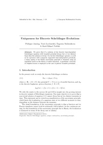 Uncontrolled Keywords Discrete Schrödinger equation, unique continuation, uncertainty principle