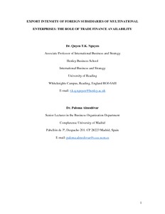 Export intensity of foreign subsidiaries of multinational enterprises: the role of trade finance availability.