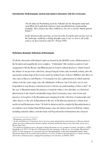 The introductory chapter sets out to explain the concept of ‘Hellenomania’ as it is used in this volume, comparing it with the other ‘manias’ explored in the series and more familiar notions of Hellenism, philhellenism and ‘Greekness’ from antiquity to contemporary times. Setting out from Martin Bernal’s famous employment of ‘Hellenomania’ to describe the romantic and racist overtones of the nineteenth-century Northern European obsession for things Greek, we argue that it can profitably be used with a broader meaning, to encompass a longer and more variegated history of enthusiasms. We cast a spotlight on Hellenomania’s legacy within contemporary perceptions of Greece, among both Greeks and non-Greeks, up to and including the resurgence of neocolonial discourses during the recent Euro-crisis. We also locate Hellenomania in the context of the wider ‘material turn’ in the sciences and humanities.