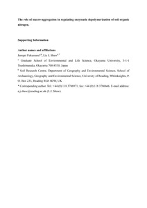 Fukumasu, J. and Shaw, L. (2017) The role of macro-aggregation in regulating enzymatic depolymerization of soil organic nitrogen. Soil Biology and Biochemistry, 115. pp. 100-108. ISSN 0038-0717 doi: 10.1016/j.soilbio.2017.08.008