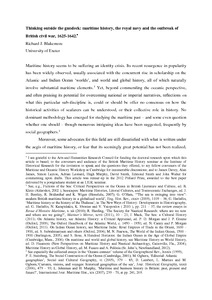Maritime history seems to be suffering an identity crisis, rising in popularity but unsure of its place within historical scholarship and divided in approach. Seafarers, as a consequence, have remained marginal within mainstream history. This article argues that only by integrating the study of maritime topics into wider historical debates can maritime history overcome these doubts, taking as a case study the role of seafarers and the navy in British politics during 1625−42. First examining previous interpretations offered by scholars, largely based on a conception of seafarers as politically and socially isolated from developments ashore, the article then reassesses the available evidence for popular political activity within the maritime community. It argues that seafarers were deeply involved in the political and religious divisions that drove Britain into civil war in 1642; and, more broadly, that scholars should recognize the importance of both local and global approaches to maritime history – that they should think outside the gundeck.