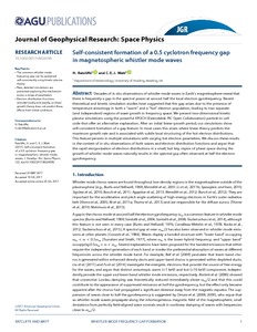Ratcliffe, H. and Watt, C. E. J. (2017) Self-consistent formation of a 0.5 cyclotron frequency gap in magnetospheric whistler-mode waves. Journal of Geophysical Research - Space Physics, 122 (8). pp. 8166-8180. ISSN 0148-0227 doi: 10.1002/2017JA024399