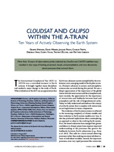 Stephens, G., Winker, D., Pelon, J., Trepte, C., Vane, D., Yuhas, C., L'Ecuyer, T. and Lebsock, M. (2018) CloudSat and CALIPSO within the A-Train: ten years of actively observing the Earth system. Bulletin of the American Meteorological Society, 99 (3). pp. 569-581. ISSN 1520-0477 doi: 10.1175/BAMS-D-16-0324.1