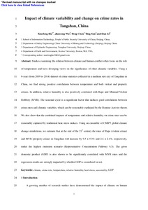 Impact of climate variability and change on crime rates in Tangshan, China.