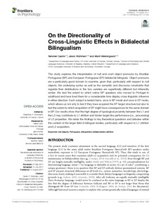 Castro, T., Rothman, J. and Westergaard, M. (2017) On the directionality of cross-linguistic effects in bidialectal bilingualism. Frontiers in Psychology, 8. 1382. ISSN 1664-1078 doi: 10.3389/fpsyg.2017.01382