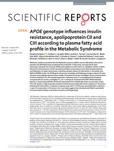 APOE genotype influences insulin resistance, apolipoprotein CII and CIII according to plasma fatty acid profile in the Metabolic Syndrome