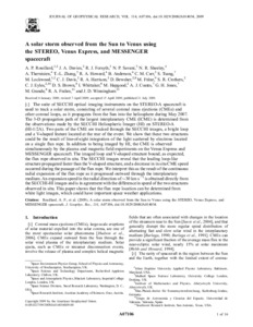 Rouillard, A. P., Davies, J. A., Forsyth, R. J., Savani, N. P., Sheeley, N. R., Thernisien, A., Zhang, T.-L., Howard, R. A., Anderson, B., Carr, C. M., Tsang, S., Lockwood, M. ORCID: https://orcid.org/0000-0002-7397-2172, Scott, C. J. ORCID: https://orcid.org/0000-0001-6411-5649, Harrison, R. A., Bewsher, D., Fränz, M., Crothers, S. R., Eyles, C. J., Brown, D. S., Whittaker, I., Hapgood, M., Coates, A. J., Jones, G. H., Grande, M., Frahm, R. A. and Winningham, J. D. (2009) A solar storm observed from the Sun to Venus using the STEREO, Venus Express, and MESSENGER spacecraft. Journal of Geophysical Research, 114 (A7). A07106. ISSN 0148-0227 doi: 10.1029/2008JA014034