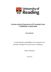 Balubaid, R. (2017) Autism and the experience of transition from childhood to adulthood. PhD thesis, University of Reading.