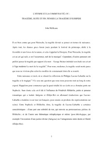 Mckeane, J. ORCID: https://orcid.org/0000-0003-2141-079X (2017) L’hymne et la communauté, ou Tragédie : suite et fin. Penser la tragédie d’Euripide. L’Esprit créateur, 57 (4). pp. 39-49. ISSN 1931-0234 doi: 10.1353/esp.2017.0040