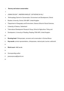 Representations of animals are diverse and can portray local understandings of nature conservation, information that is often missing from conservation debates. In Cantanhez National Park (southern Guinea-Bissau), chimpanzees (Pan troglodytes verus) are recognized as animals that share certain features with humans but live independently of them in the forest. However, chimpanzees are also integral to socially mediated, deep-rooted local narratives about sorcery and nature conservation. We use results from ethnographic research to explore local interpretations of chimpanzee attacks on people. Attacks by ‘bush’ chimpanzees occur when an animal is provoked by someone's actions towards it. Unprovoked attacks, however, are either interpreted as the act of a shape-shifted chimpanzee (i.e. a sorcerer) or as the responsibility of conservation stakeholders. In the case of unprovoked attacks, chimpanzee aggression is linked to a perceived abuse of power and to greed, with implications for nature conservation locally. Close analysis of local representations of animals contributes to a broader consideration of conservation priorities and practice.