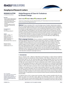 Storer, L. N., Williams, P. D. ORCID: https://orcid.org/0000-0002-9713-9820 and Joshi, M. M. (2017) Global response of clear-air turbulence to climate change. Geophysical Research Letters, 44 (19). pp. 9976-9984. ISSN 0094-8276 doi: 10.1002/2017GL074618