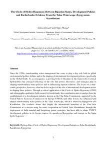 The circle of hydro-hegemony between riparian states, development policies and borderlands: evidence from the Talas waterscape (Kyrgyzstan-Kazakhstan).