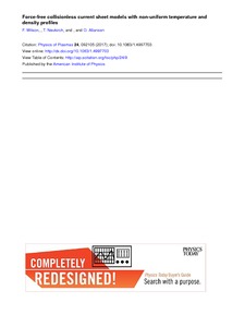 Wilson, F., Neukirch, T. and Allanson, O. (2017) Force-free collisionless current sheet models with non-uniform temperature and density profiles. Physics of Plasmas, 24 (9). 092105. ISSN 1070-664X doi: 10.1063/1.4997703