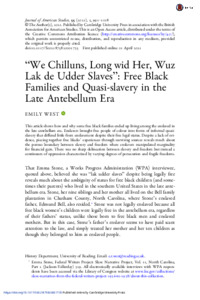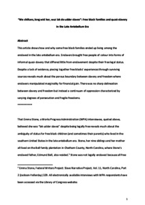 ‘We chilluns, long wid her, wuz lak de udder slaves’: free black families and quasi-slavery in the pre-Civil War US South.
