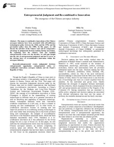 The many re-combinative innovations of the Chinese aerospace industry have been associated with self-sufficiency technological policy between the 1960s and the 1970s and the pro-market policy since the 1980s. In this paper, we will discuss the activities of the Chinese state and its comparative advantage in judgmental decision making during uncertainty. By exploring how the Chinese state has handled entrepreneurial events over the decades, we will gain insight into the role of entrepreneurial judgment and how it serves as the driving force of re-combinative innovation within the aerospace industry.