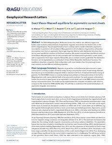 Allanson, O., Wilson, F., Neukirch, T., Liu, Y.-H. and Hodgson, J. D. B. (2017) Exact Vlasov-Maxwell equilibria for asymmetric current sheets. Geophysical Research Letters, 44 (17). pp. 8685-8695. ISSN 0094-8276 doi: 10.1002/2017GL074168