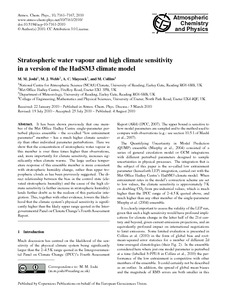 Joshi, M. M., Webb, M. J., Maycock, A.C. and Collins, M. (2010) Stratospheric water vapour and high climate sensitivity in a version of the HadSM3 climate model. Atmospheric Chemistry and Physics, 10. pp. 7161-7167. ISSN 1680-7316 doi: 10.5194/acp-10-7161-2010