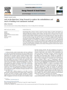 Schweber, L. ORCID: https://orcid.org/0000-0002-6069-0002 (2017) Jack-in-the-black-box: using Foucault to explore the embeddedness and reach of building level assessment method. Energy Research & Social Science, 34. pp. 294-304. ISSN 2214-6296 doi: 10.1016/j.erss.2017.08.005