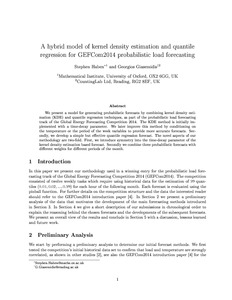 Haben, S. and Giasemidis, G. (2016) A hybrid model of kernel density estimation and quantile regression for GEFCom2014 probabilistic load forecasting. International Journal of Forecasting, 32 (3). pp. 1017-1022. ISSN 0169-2070 doi: 10.1016/j.ijforecast.2015.11.004