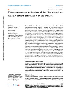 Hindi, A., Parkhurst, C., Rashidi, Y., Ho, S. Y., Patel, N. ORCID: https://orcid.org/0000-0002-8600-0663 and Donyai, P. ORCID: https://orcid.org/0000-0001-5403-6170 (2017) Development and utilization of the Medicines Use Review patient satisfaction questionnaire. Patient Preference and Adherence, 11. pp. 1797-1806. ISSN 1177-889X doi: 10.2147/PPA.S146991