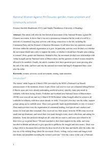 This article will offer the first historical assessment of the National Women Against Pit Closures movement. It shows that it was not a spontaneous formation but the result of work by a network of committed, long-time activists with strong connections to the left, including the Communist Party and the Women’s Liberation Movement. It will show how key questions caused divisions within the national organisation as it grew. In particular, activists were divided over whether the movement should aim solely to support the strike, or whether it should have broader aims relating to women’s lives, gender and feminism. Related to this, the movement divided over relationships with Arthur Scargill and the National Union of Mineworkers, and the question of which women should be allowed to be members. Finally, the article examines how these questions grew more pressing after the end of the strike, and how and why the national movement had largely disappeared three years after the strike.