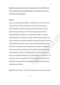 Eighteenth-century secret history in translation: the case of 'The Secret History of Queen Zarah and the Zarazians' and 'Histoire secrette de La reine Zarah, et des Zaraziens'.