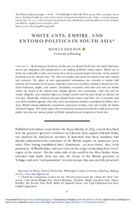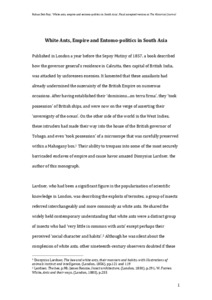 By focussing on the history of white ants in colonial South Asia, this article shows how insects were ubiquitous and fundamental to the shaping of British colonial power. British rule in India was vulnerable to white ants because these insects consumed paper and wood, the key material foundations of the colonial state. The white ant problem also made the colonial state more resilient and intrusive. The sphere of strict governmental intervention was extended to include both animate and inanimate nonhumans, while these insects were invoked as symbols to characterise colonised landscapes, peoples and cultures. Nonetheless, encounters with white ants were not entirely within the control of the colonial state. Despite effective state intervention, white ants didn’t vanish altogether, and remained objects of everyday control till the final decade of colonial rule and after. Meanwhile, colonised and post-colonial South Asians used white ants to articulate their own distinct political agendas. Over time, white ants featured variously as metaphors for Islamic decadence, British colonial exploitation, communism, democratic socialism and more recently, the Indian National Congress. This article argues that co-constitutive encounters between the worlds of insects and politics have been an intrinsic feature of British colonialism and its legacies in South Asia.