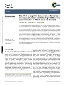 The effect of cognitive demand on performance of an executive function task following wild blueberry supplementation in 7 to 10 years old children.