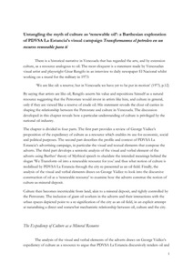 Untangling the myth of 'culture as renewable oil’: a Barthesian exploration of PDVSA La Estancia’s visual campaign Transformamos el petróleo en un recurso renovable para ti
