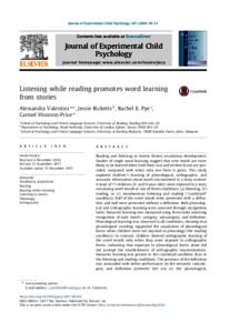 Ricketts, J., Bishop, D. V., & Nation, K. (2009). Orthographic facilitation in oral vocabulary acquisition. The Quarterly Journal of Experimental Psychology, 62(10), 1948-1966. doi:10.1080/17470210802696104