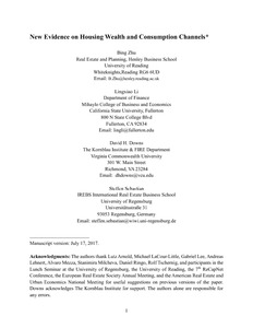 Zhu, B., Li, L., Downs, D. H. and Sebastian, S. (2019) New evidence on housing wealth and consumption channels. Journal of Real Estate Finance and Economics, 58 (1). pp. 51-79. ISSN 1573-045X doi: 10.1007/s11146-017-9638-8