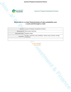 Scofield, D. and Devaney, S. ORCID: https://orcid.org/0000-0002-1916-2558 (2017) What sells in a crisis? Determinants of sale probability over a cycle and through a crash. Journal of Property Investment & Finance, 35 (6). pp. 619-637. ISSN 1463-578X doi: 10.1108/JPIF-02-2017-0013