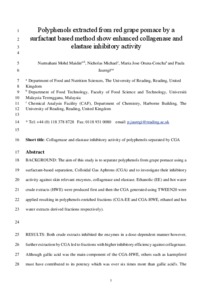 Polyphenols extracted from red grape pomace by a surfactant based method show enhanced collagenase and elastase inhibitory activity.