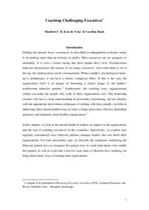 This book chapter explores the mental health of senior leaders, its impact on the organization, and the role of coaching executives in the workplace. Specifically, we explore four regularly encountered toxic behavior patterns amongst leaders that can derail their organizations. For each personality type, we describe the conditions underlying the behavior pattern, how to recognize the pattern, how to coach individuals who exhibit this pattern, as well as to provide a real live case study to illustrate how coaching can bring about better ways of running their organizations.