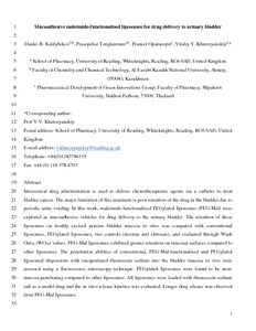Mucoadhesive maleimide-functionalised liposomes for drug delivery to urinary bladder.