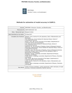 Elofsson, A., Joo, K., Keasar, C., Lee, J., Maghrabi, A. H. A., Manavalan, B., McGuffin, L. J. ORCID: https://orcid.org/0000-0003-4501-4767, Ménendez Hurtado, D., Mirabello, C., Pilstål, R., Sidi, T., Uziela, K. and Wallner, B. (2018) Methods for estimation of model accuracy in CASP12. Proteins: Structure, Function, and Bioinformatics, 86. pp. 361-373. ISSN 1097-0134 doi: 10.1002/prot.25395