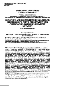 Bunker, P. R., Schutte, C. J. H., Hougen, J. T., Mills, I., Watson, J. K. G. and Winnewisser, B. P. (1997) Notations and conventions in molecular spectroscopy: part 3. Permutation and permutation-inversion symmetry notation. Pure and Applied Chemistry, 69 (8). pp. 1651-1657. ISSN 0033-4545