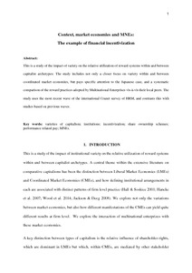 Context, market economies and MNEs: the example of financial incentivization.