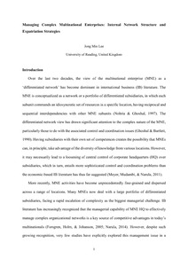 Lee, J. M. (2017) Managing complex multinational enterprises: internal network structure and expatriation strategies. AIB Insights, 17 (3). pp. 14-17. ISSN 1938-9590