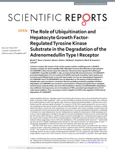 Roux, B. T., Bauer, C. C., McNeish, A. J., Ward, S. G. and Cottrell, G. S. ORCID: https://orcid.org/0000-0001-9098-7627 (2017) The role of ubiquitination and hepatocyte growth factor-regulated tyrosine kinase substrate in the degradation of the adrenomedullin type I receptor. Scientific Reports, 7 (1). p. 12389. ISSN 2045-2322 doi: 10.1038/s41598-017-12585-z