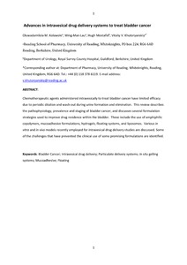 Kolawole, O. M., Lau, W. M., Mostafid, H. and Khutoryanskiy, V. ORCID: https://orcid.org/0000-0002-7221-2630 (2017) Advances in intravesical drug delivery systems to treat bladder cancer. International Journal of Pharmaceutics, 532 (1). pp. 105-117. ISSN 0378-5173 doi: 10.1016/j.ijpharm.2017.08.120