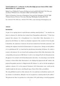 The total synthesis of aritasone via the proposed biosynthetic hetero-Diels-ALder [4 + 2] cyclodimerisation of pinocarvone has been achieved. However, the cyclodimerisation of pinocarvone did not proceed under standard conditions and ultra-high pressure (19.9 kbar) was required